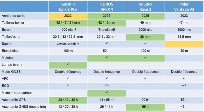 - l’autonomie de la Race 2 et de l’Epix 2 Pro