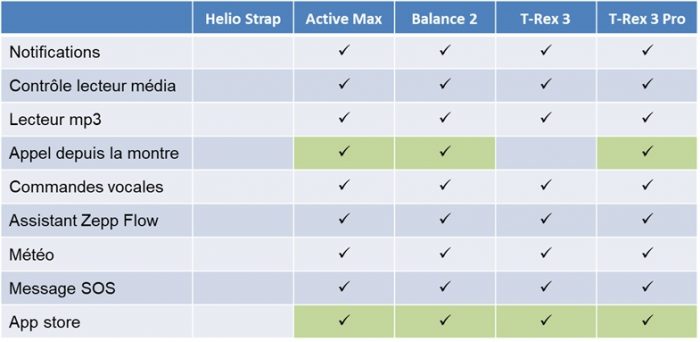 Elles intègrent toutes un micro qui permet d’interagir avec l’assistant virtuel Zepp Flow et donner des commandes vocales. Lorsqu’il est combiné à un haut-parleur, ça permet plus de capacités, notamment dans le guidage vocal ou la prise d’appels téléphoniques.