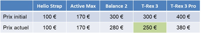 Dans le temps, le renouvellement des modèles se faisant assez vite, les prix ont aussi tendance à baisser rapidement. C’est le cas notamment de la T-Rex 3, qui a atteint un prix incroyable au dernier Black Friday (et encore aujourd’hui).