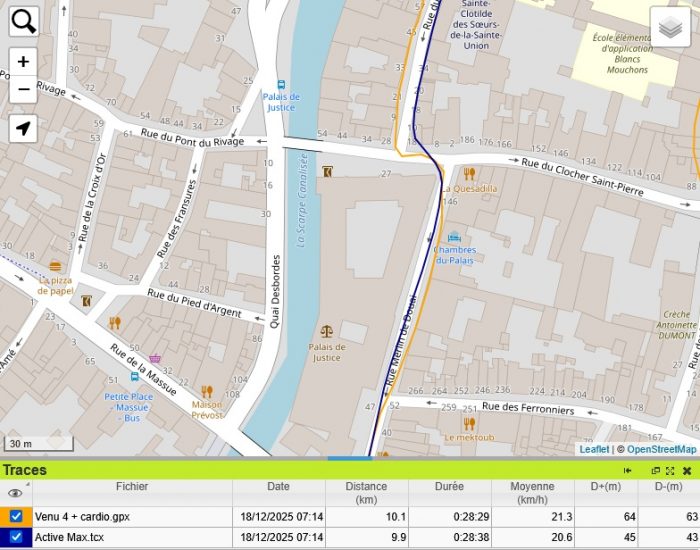 Le GPS de l’Active Max a le même comportement que toutes les montres GPS Amazfit que j’aie déjà testées : le lissage fait qu’elle coupe un peu dans tous les virages. C’est légèrement visible ici.