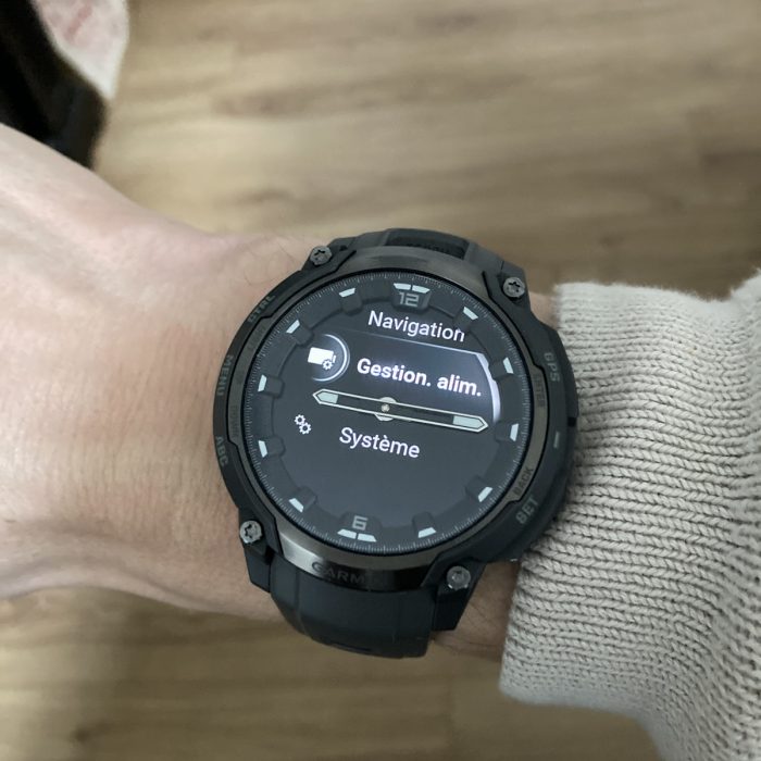 L’écran de l’Instinct Crossover AMOLED n’est pas tactile. C’est probablement dû au fait que l’écran (le vrai) est sous les aiguilles et que ce n’est en réalité qu’une vitre qui recouvre le tout. Quoi que l’Instinct 3 AMOLED n’est pas tactile non plus. C’est assez déconcertant au début, parce que les années passant, on a tous pris l’habitude d’utiliser le tactile, au moins dans l’utilisation de montre connectée (même si on préfère en général les boutons en utilisation sportive).