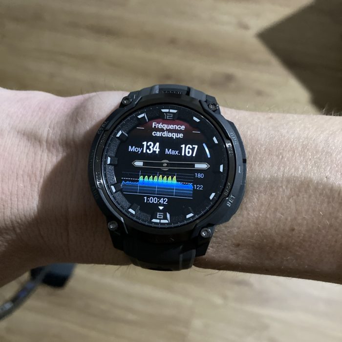 Si on active l’allumage permanent de l’écran (en fait, c’est activé par défaut), alors l’autonomie s’en trouvera réduite d’environ 20 % (24 h au lieu de 29 en mode GPS).