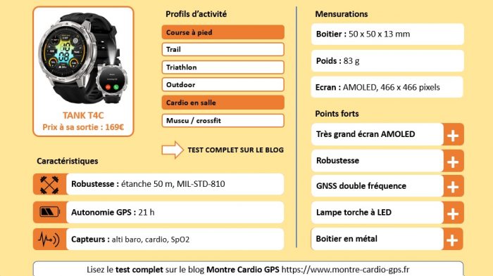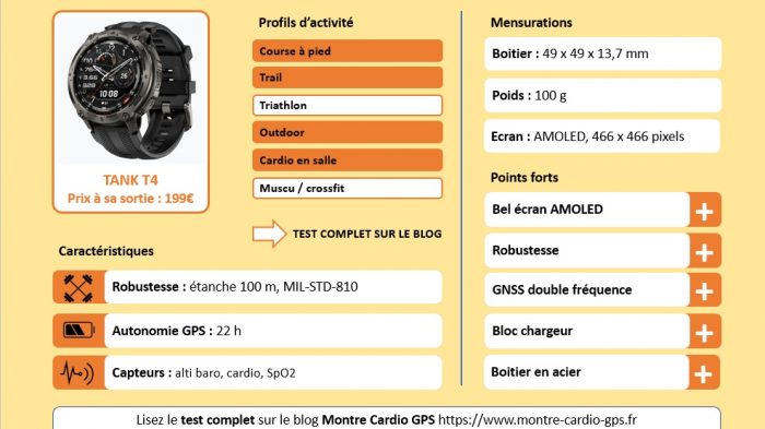On trouve sur la T4 et la T4C les capteurs habituels d’une montre GPS multisports :