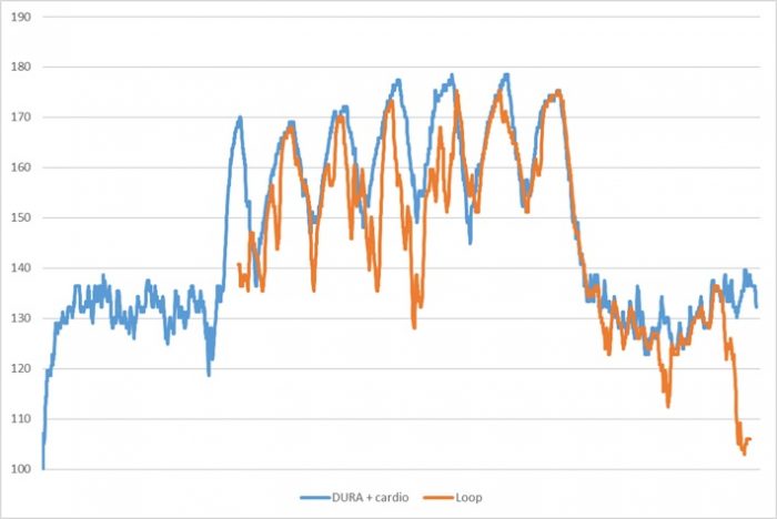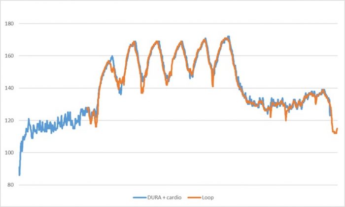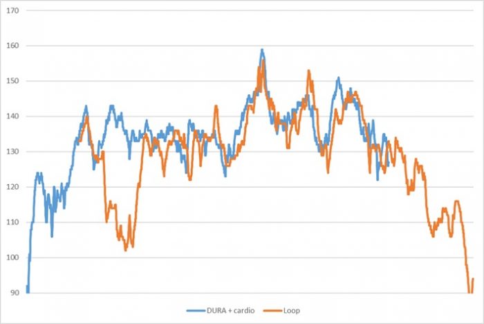 Sur la fin de ma période de test, j’ai lancé quelques enregistrements manuels. Le début et la fin de la séance sont alors parfaits (évidemment), mais la mesure de la FC ne l’est pas toujours. Ca serait mieux si on pouvait porter le Loop au niveau du bras.